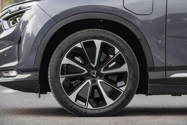 VF 8 trang bị bộ la-zăng 5 chấu, sơn 2 tông màu với kích thước lớn, lên tới 20 inch. Đi cùng với đó là bộ lốp béo 245/45R20 giúp xe vận hành cân bằng, êm ái và đánh lái chính xác.